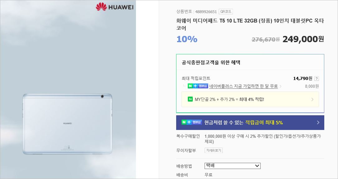 개인적으로 가성비만으로 놓고 봤을 때는 화웨이 미디어패드 T5 10이 제일 만족도가 높았습니다. 10.1인치로 액정이 크기 때문에 인강부터 유튜브까지 모두 보기에 매우 좋습니다.