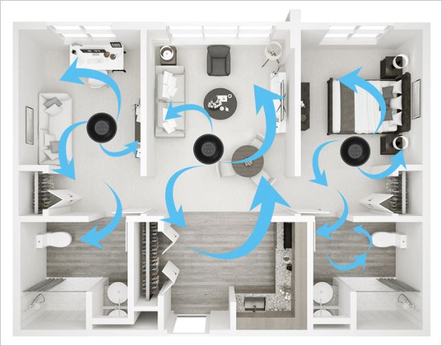 웨이코스 씽크웨이는 기존 제품들이 구석구석 공기청정을 하기엔 쉽지 않다는 컨셉을 가지고 있습니다. 즉, 아무리 좋은 공기청정기도 방마다 효율을 발휘할 수는 없기 때문에 저렴한 웨이코스를 방마다 두어 효율을 높이자는 뜻입니다.