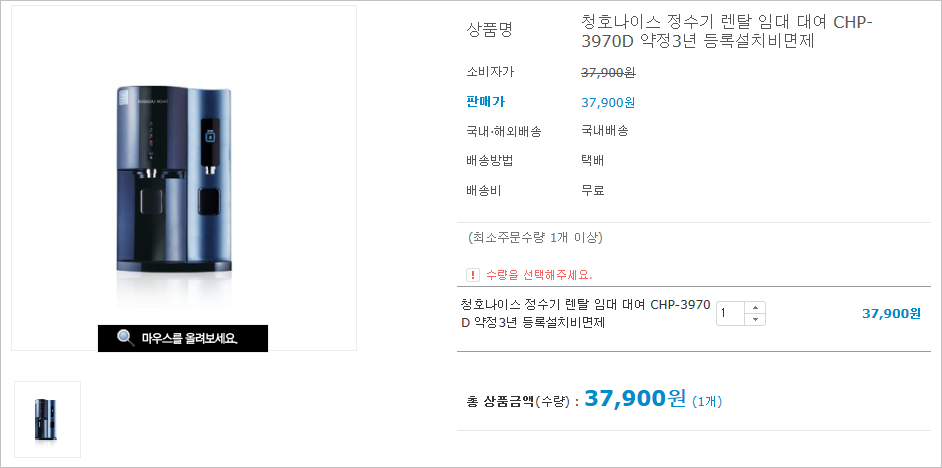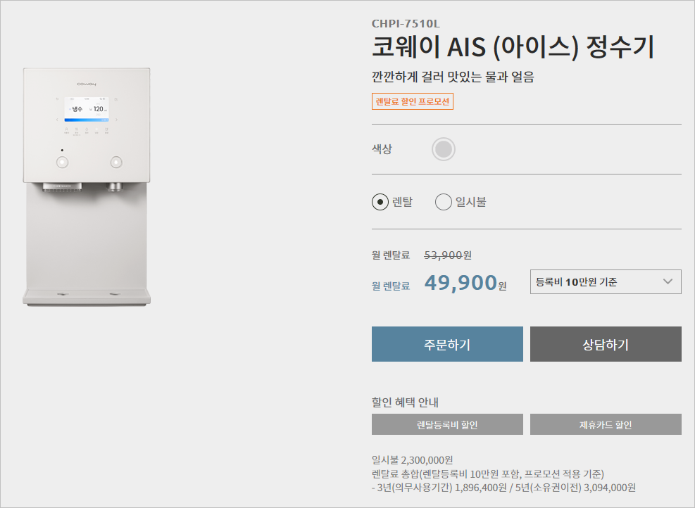 청호나이스는 가입비가 없는 정수기 브랜드로 시작 월의 렌탈비용만 내면 되기에 초기부담이 없는 것도 장점입니다. 또한 얼음정수기의 선두 브랜드인만큼 믿음이 가는 정수기이기도 합니다.