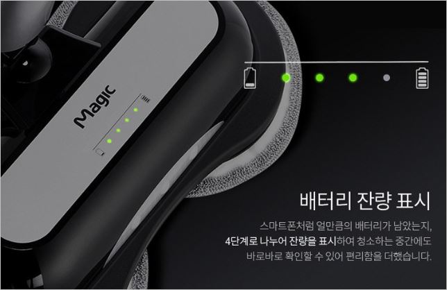 SK매직 스핀업은 고급스러운 디자인에 어두운 곳도 LED라이트로 밝혀 청소할 수 있는 매력적인 제품입니다. 충전을 4단계로 표시하여 체킹하기 쉽고, 광폭 극세사 패드로 좀 더 넓고 빠르게 청소할 수 있습니다.