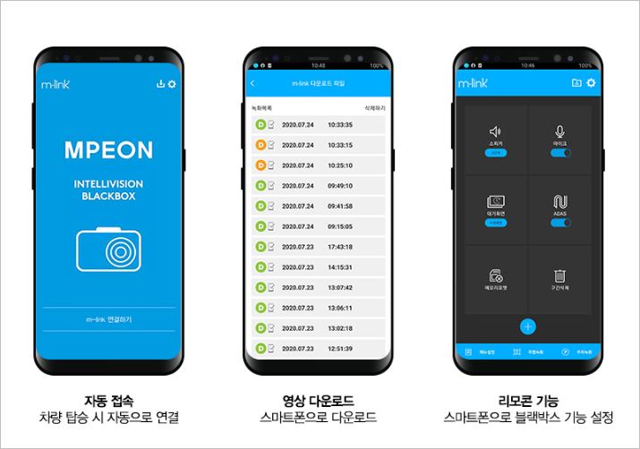 엠피온 블랙박스가 소비자로부터 가장 각광받는 기능은 역시 스마트폰 연동입니다. 블루투스를 통해 연동할 수 있어서 바로바로 영상을 볼 수 있는 장점이 있습니다.
