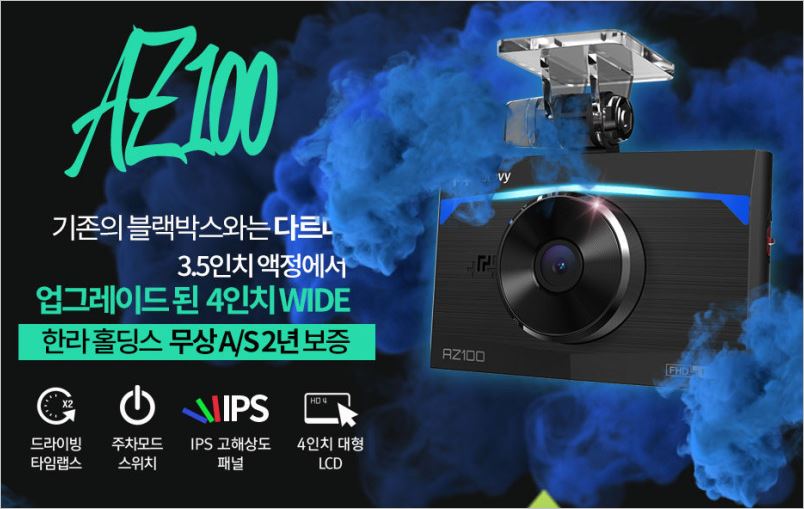한라홀딩스 오토비 AZ100은 4인치 와이드한 액정에 고해상도 패널을 장착한 제품입니다. 특히 주차모드 스위치와 드라이빙 타임랩스 기능이 있어 보편적인 블랙박스를 한 단계 발전시켰습니다.