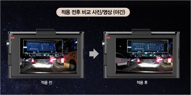 이미지를 최적화시킬 수 있어서 떨림이나 특정 환경변화, 날씨 등에 자동으로 맞춰 저장하게 됩니다. 촬영조건을 걱정할 필요가 없는 똑똑한 블랙박스 입니다. 블랙박스 추천