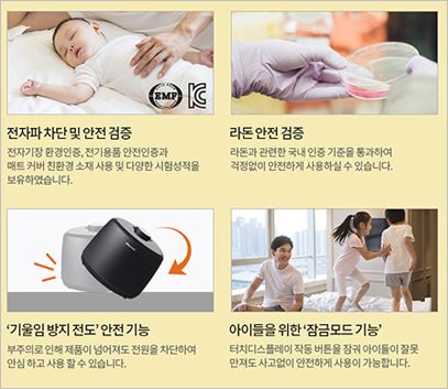 영하 1도 이하의 온도가 감지되면 자동으로 가동되며, 제품이 외부충격으로 넘어지거나 기울어 지면 전원을 차단합니다. 안전성이 뛰어나기에 아이를 키우는 집에서 선호하는 온수매트입니다. 가격은 10만원부터 입니다.