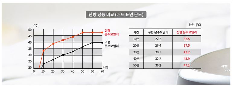 분리형 순환수 직가열 방식을 사용하여, 온수를 더욱 빠르게 데울 수 있습니다. 분리난방을 사용하기 때문에 2인 각자의 온도를 맞출 수 있고, 더불어 최저소음 설계로 방해없는 숙면을 하기에 용이합니다.