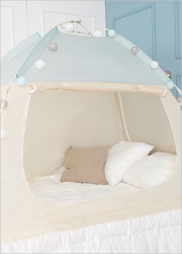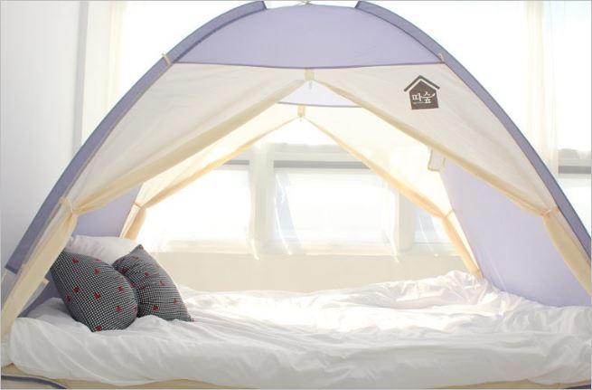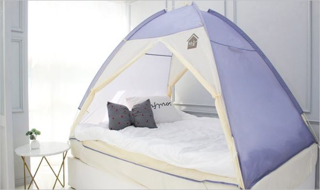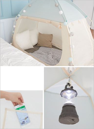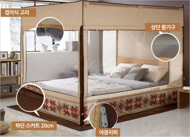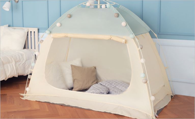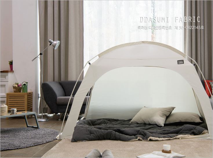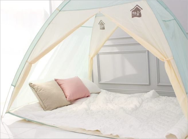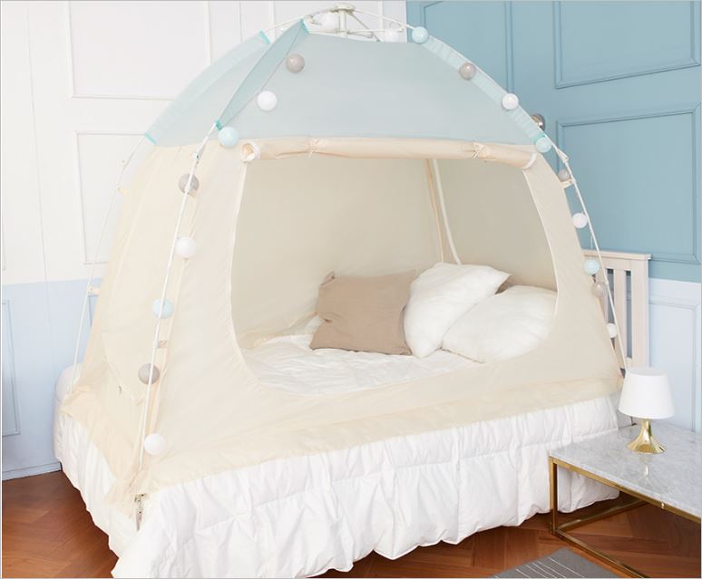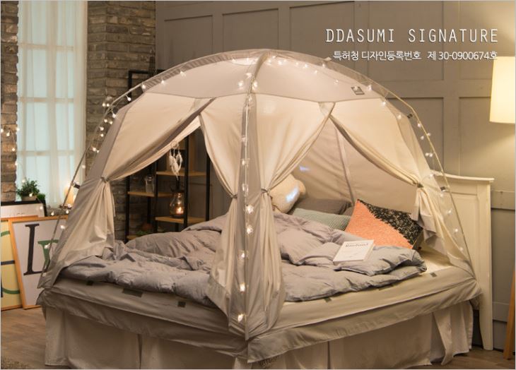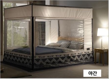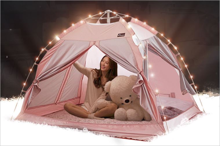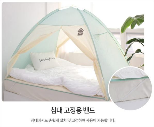 램프걸이와 케이블지퍼, 포켓, 고정용 단추까지 소비자의 관점에서 제작한 것이 눈에 보이는 꼼꼼한 난방텐트 입니다. 매트리스에 고정할 수 있도록 고무밴드까지 있어서 프레임이 풀리는 현상도 없습니다. 가격은 4만원부터 입니다.