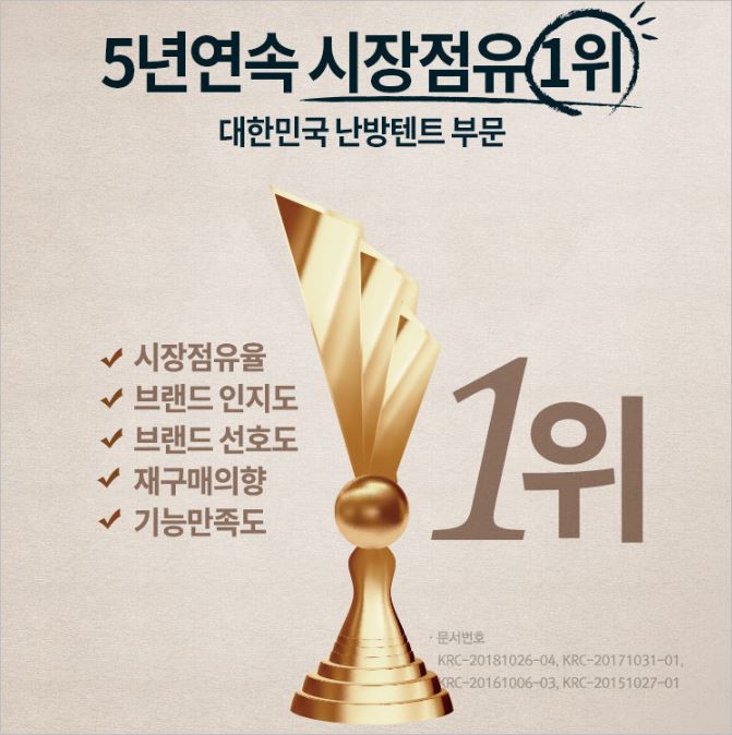 따수미는 국내 난방텐트 부문, 5년 연속 판매율 1위를 하고 있는 브랜드입니다. 소비자 만족도도 매우 높아 재구매율이 높으며 무상AS도 3년간 가능해 좋습니다.