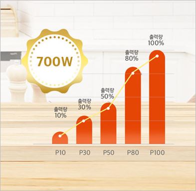강도를 5단계로 조절할 수 있으며, 700W의 강한 출력으로 빠르고 신속하게 조리가 가능합니다. 특히 8종의 요리 기능을 갖추고 있어서, 육류, 파스타, 데우기, 데침, 스프 등 다양한 음식을 조리할 수 있습니다.