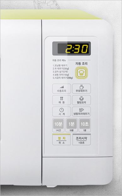 얼어있는 음식을 알맞게 해동시켜주며, 데우기, 삶기 등 각종 요리에 적합한 전자레인지입니다. 특히 99.9%의 항균효과를 가지고 있어 내부 청결관리가 용이합니다.