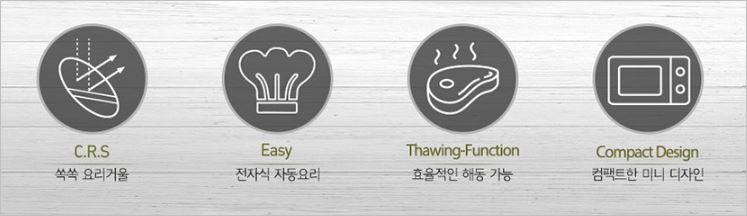다이아몬드 형상을 한 마이크로웨이브 분사로 음식의 조리시간을 단축시켜주고, 맛은 더욱 높여줍니다. 또한 직관적이고 간편한 버튼으로 편리하게 이용이 가능합니다.