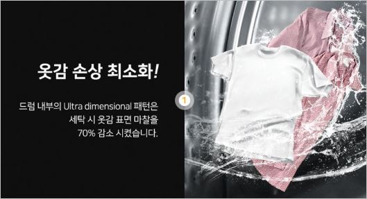 마치 빨래판을 구현한 듯, 올록볼락한 내부 드럼통을 가지고 있어 손빨래를 한 듯이 세탁물을 깨끗하게 만들어 줍니다. 또한 고급스러운 블랙와이드 도어로 인테리어에도 매력적입니다.