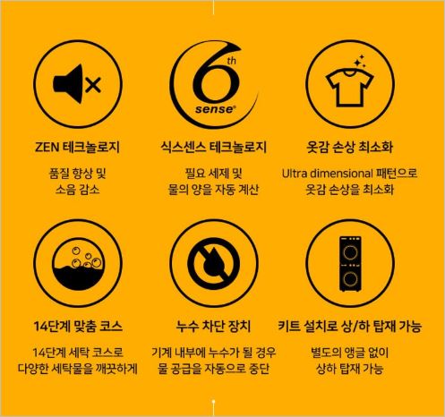 고성능 다이렉트 드라이브 모터를 탑재시켜, 세탁의 효율은 높이고 소음은 감소시킨 드럼세탁기 입니다. 또한 14단계의 맞춤 코스가 있어 세탁물을 더욱 깨끗하게 세척할 수 있습니다.