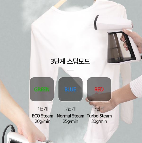 3단계 스팀모드를 가지고 있어서 원단에 따라 주름에 따라 상황에 맞게 조율이 가능하며, 0.8kg의 가벼운 무게로 여행 시 가지고 다니기에 유용합니다.