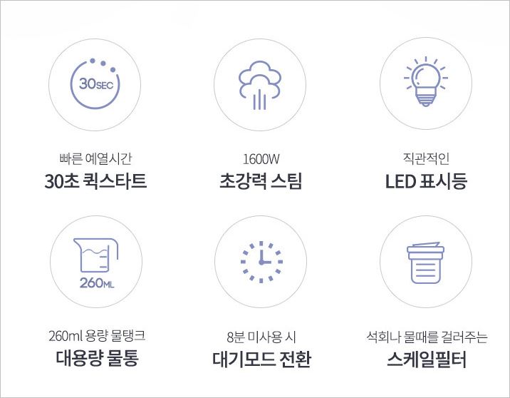 석회나 물때를 자체적으로 걸러주는 스케일 필터를 가지고 있어서, 청소나 고장 걱정이 없습니다. 또한 8분 이상 대기시간이 길어졌을 시에는 알아서 대기모드로 전환해주는 스마트한 기능을 가지고 있습니다.