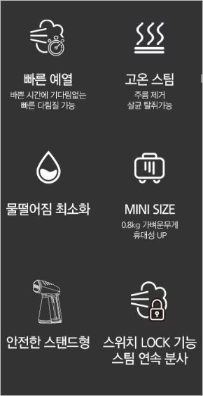 6중 열판을 사용하여 옷감에 손상이 전혀없이 깔끔한 다림질이 가능하며, 100ml 대용량으로 최대 5벌까지 끊김없이 다릴 수 있습니다. 가격은 39,800원 입니다.