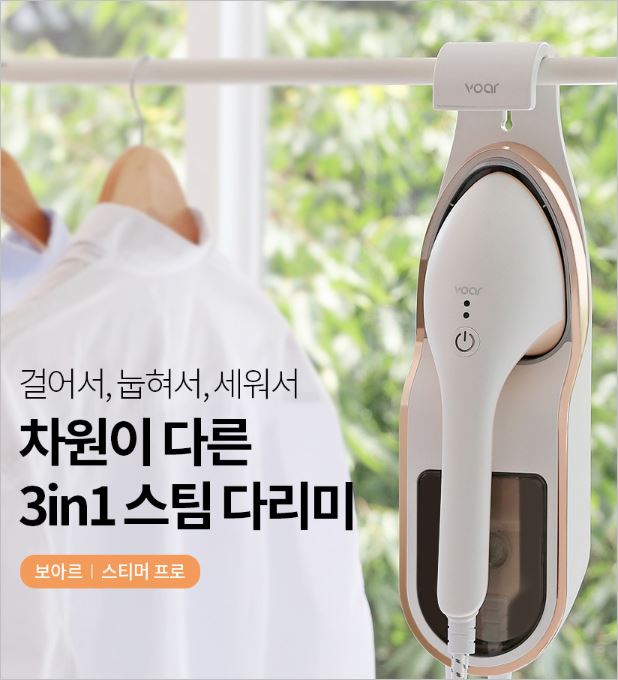 보아르 스티머 프로 스팀다리미는 3in1 멀티형으로 큰 인기를 끌고 있는 제품입니다. 걸거나, 눕히거나, 세우거나 상황에 맞게 모두 가능한 장점이 있으며, 자그마치 330ml의 대용량을 탑재하고 있습니다.