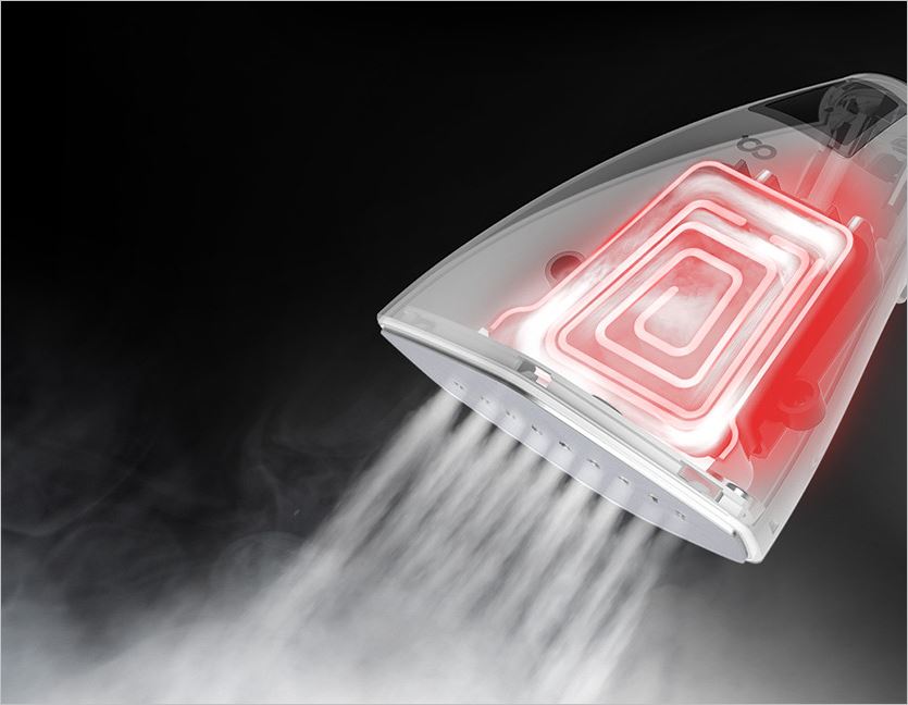 간단한 조작을 통해서 순간 및 연속 분사가 가능하기 때문에, 옷에 따라서 집중적으로 다림질을 할 수 있는 특징이 있습니다.