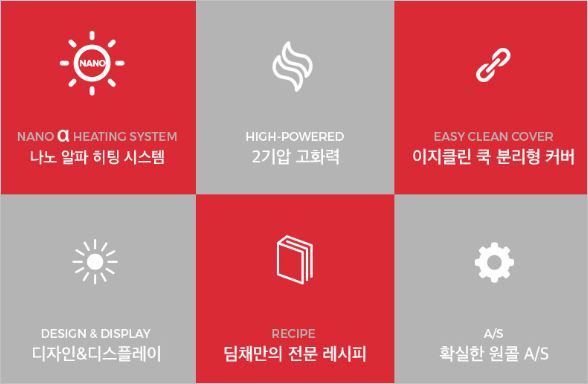 쿠첸만의 기술력으로 더욱 골고루, 더욱 빠르게 밥을 지을 수 있으며, 벌징기법을 사용하여 찰기가 더욱 강화되었다고 할 수 있습니다. 가격은 6인용 기준, 339,000원 입니다.
