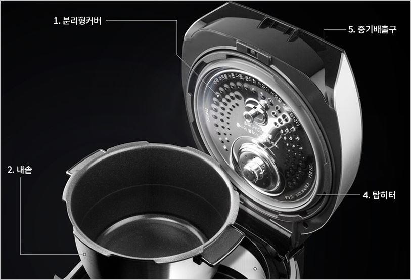 이지클린 쿡 분리형 커버로 탈부착이 가능하기 때문에, 빼서 구석구석 세척이 가능합니다. 또한 2중 패킹을 이용해 압력이 새지 않도록 합니다. 가격은 6인용 기준, 176,000원부터 입니다. 전기압력밥솥 추천