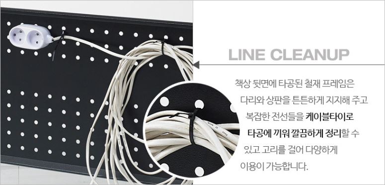선반 설치가 가능하도록 되어있기 때문에 프린터나 본체를 바닥에 놓을 필요가 없으며, 컴퓨터 선이나 전선 등을 타공에 끼워 정리하기도 좋습니다. 가격은 124,000원 입니다.