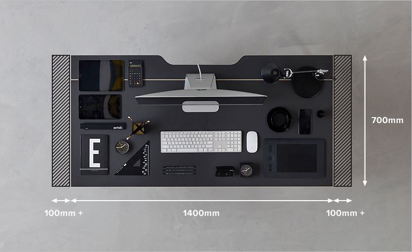 모니터와 적정거리를 유지할 수 있도록 700mm의 깊으로 제작되었으며, 내구성 높은 ABS엣지 마감으로 쉽게 손상되거나 떨어지지 않습니다.