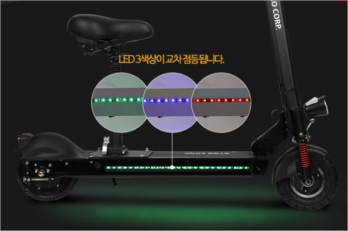 양사이드에 3색상이 교차되는 LED바를 가지고 있어서 야간주행도 문제없으며, 고출력 BLDC 허브모터로 경사진 면도 힘있는 주행이 가능합니다.