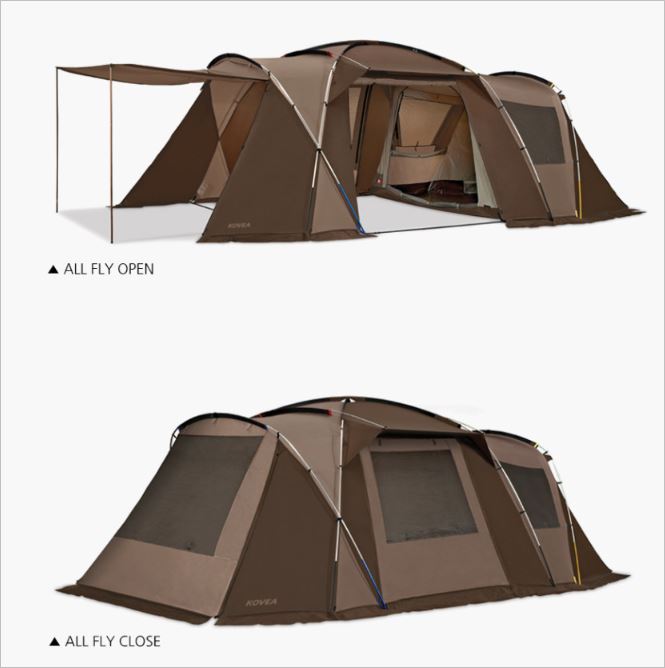 캐노피로 활용할 수 있는 측면 출입구가 만들어져 있으며, 넓고 편안한 이너텐트가 있어서 매력적입니다. 이동이 편리하고 실용성이 높아 인기가 많습니다. 가격(4인용 거실형 텐트)은 560,000원 입니다.