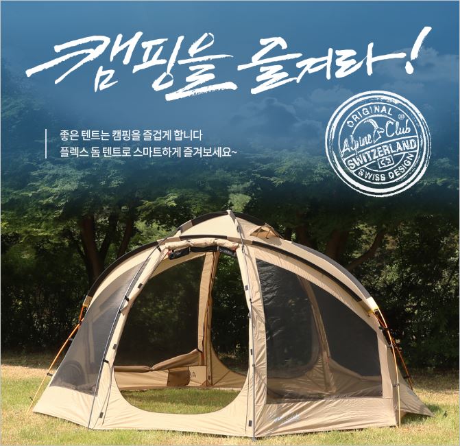 스위스의 명품 아웃도어 브랜드 '스위스알파인클럽'에서 만든 쉘터텐트는 단 4개의 폴대를 이용해 손쉬운 설치가 가능한 스마트형 텐트입니다.