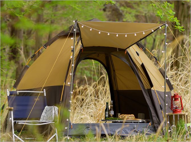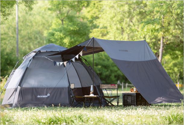 원터치로 쉽게 텐트를 설치할 수 있으며, 그들막이 있어 부가적인 공간을 형성할 수 있습니다. 루프벤틸레이션으로 자외선 2중 차단이 가능하며, 무게도 가벼워 이동이 쉽습니다. 가격(5인용)은 69,900원 입니다.
