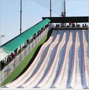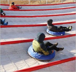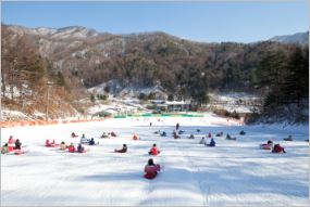 한화리조트 양평튜빙눈썰매장은 일반썰매가 아닌 튜빙을 이용해 타기 때문에 훨씬 빠른 속도감을 느낄 수 있는 눈썰매장입니다. 또한 슬로프 폭도 넓고 길어서 편하게 탈 수 있습니다.