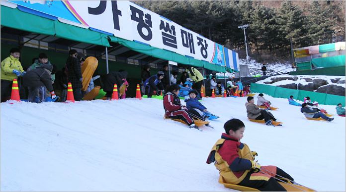 가평사계절썰매장은 여름에는 시원하게 물썰매를, 겨울에는 신나게 눈썰매를 즐길 수 있는 곳입니다. 초급슬로프와 중급슬로프를 운영하고 있으며, 무빙워크가 있어서 편하게 탈 수 있습니다.