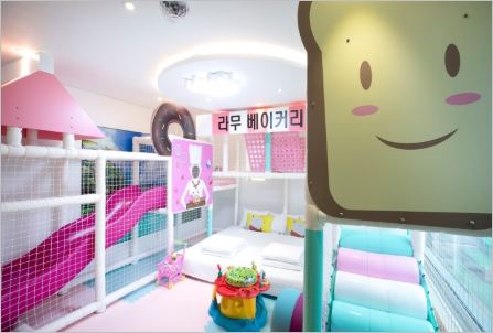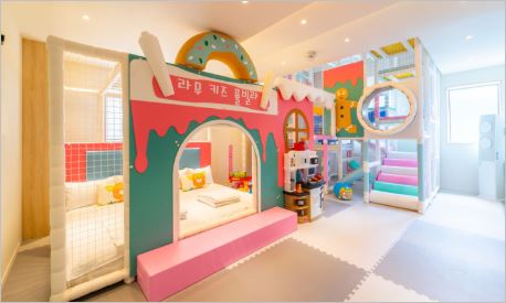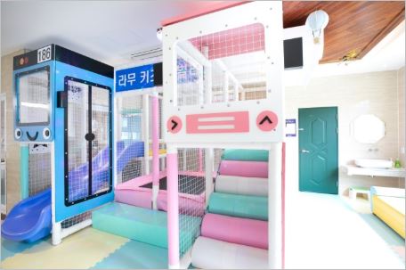 라무키즈풀빌라팬션은 키즈풀빌라 부문 매년 우수업체로 꼽히는 곳입니다. 마치 키즈카페를 룸 안으로 옮겨놓은 듯한 인상을 받으며 실내에 미온수수영장을 갖추고 있습니다.