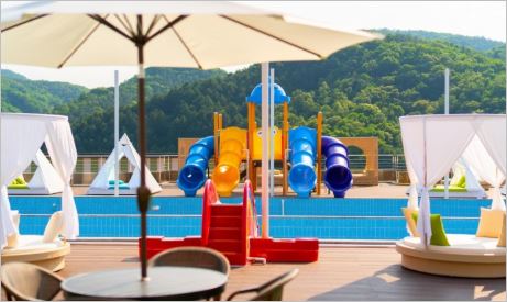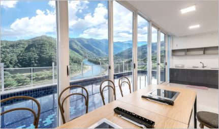 실외에 대형수영장과 키즈놀이터를 보유하고 있으며, 풀사이드 카페까지 있어서 가족이 여행하기 좋은 풀빌라입니다. ● 주소 : 경기 가평군 설악면 미사리 320-1 / 가격대 49만원~89만원