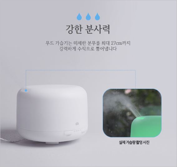 다양한 색이 표현되기 떄문에 사용자의 감성에 따라 느낌이 전혀다른 가습기를 사용할 수 있으며, 최대 27센치까지 분사하는 힘을 가지고 있습니다. 가격은 32,900원 입니다.