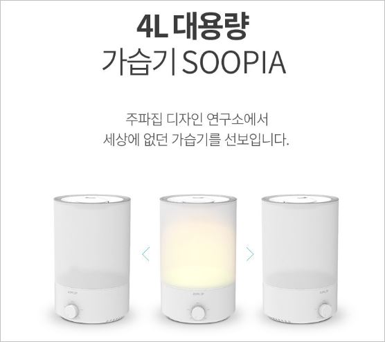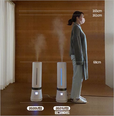 가열식 가습기의 1/10정도의 소비전력(27W)을 가지고 있으며, 수면캡을 통해 최저소음을 구현하였습니다. 또한 핸드폰을 통해 작동이 가능하기 때문에 더욱 편리합니다. 가격은 159,000원 입니다.