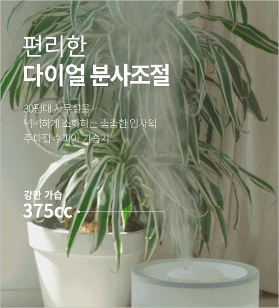 원하는 방향으로 손쉽게 돌릴 수 있으며, 편리한 분사조절로 30평형대 사무실까지 전부 커버가 가능합니다. 소비전력 12W에 시간당 500CC의 분무량을 탑재한 최적의 가습기 입니다. 가격은 40,900원 입니다. 가습기 추천