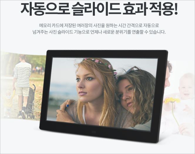 이미지의 사이즈를 인식하여 화면에 맞게 비율을 조정하며, 자동 ON/OFF 기능을 통해 불필요한 시간에는 전기를 차단해 줍니다. 가격은 15만원 입니다. 디지털액자 추천