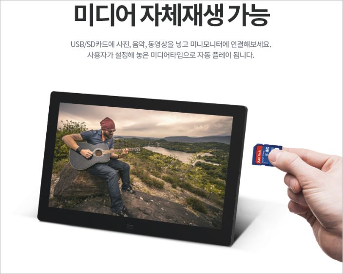 SD슬롯과 USB호스트가 있어서 쉽게 화면을 출력할 수 있으며, 시계/달력부터 메시지 전달 기능까지 두루두루 갖춘 디지털액자 입니다. 가격은 52,000원 입니다.