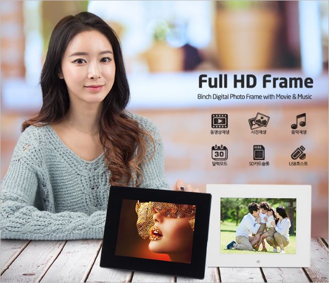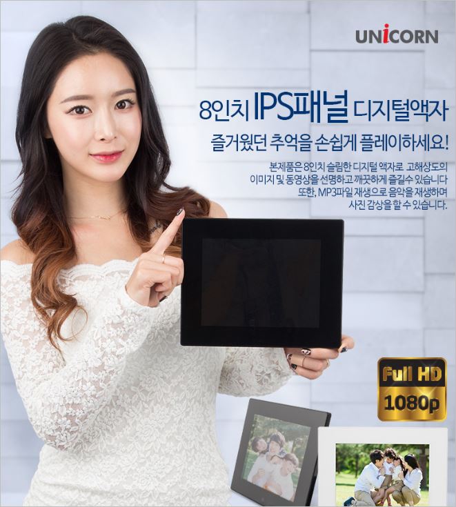 유니콘 LTD-800A는 108OP 풀HD를 지원, 선명한 고화질의 사진을 출력하여 감상할 수 있습니다. 또한 배경음악을 함께 틀어놓을 수 있어서 인테리어 분위기까지 살릴 수 있는 제품입니다.