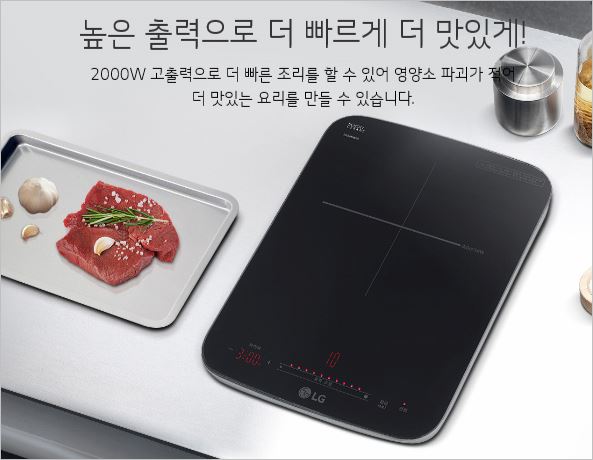 LG전자 HEI1V9는 국내 최고 화력을 자랑하는 인덕션입니다. 2000W은 높은 고화력으로 음식의 영양소를 지킬 수 있도록 빠르고 신속하게 조리해줍니다.