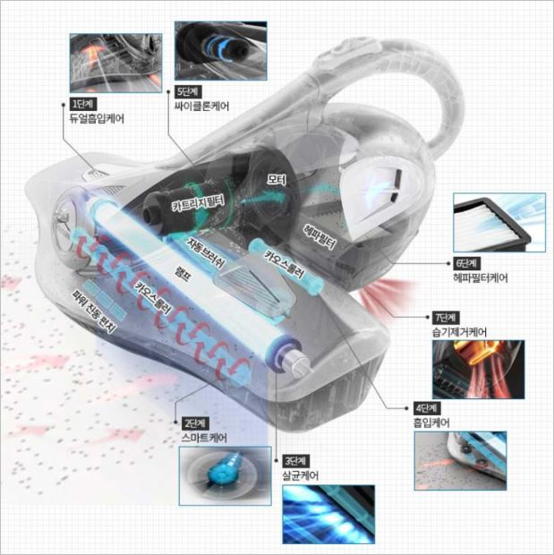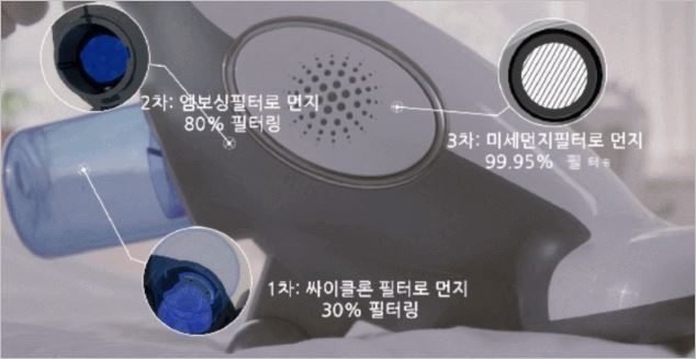 탱크 침구청소기는 강력한 싸이클론 흡입력을 탑재한 제품으로 진드기부터 박테리아까지 완벽하게 흡입합니다. 또한 다중 3단계 필터링으로 빠져나갈 틈 없이 포집하는 장점이 있습니다.
