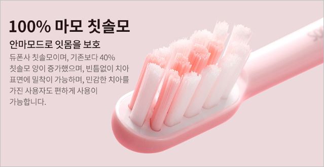 4가지 모드로 상황에 따라 맞춤형으로 칫솔질을 할 수 있으며, 모가 부드러워 잇몸을 보호할 수 있습니다. 더불어 방수/방습 기능이 탑재되어 있어 물로 인한 제품 고장이 없습니다.