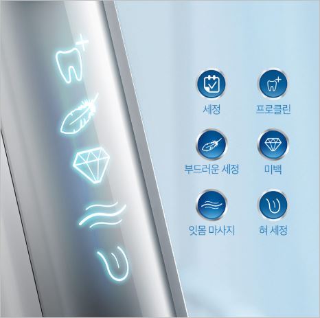 블루투스와 연동이 되어 칫솔질을 하고 있는 위치 파악 및 덜 닦인 곳에 대해 실시간 코칭을 해줍니다. 또한 6가지 맞춤 세정 기능을 통해 상황에 따라 효과적으로 칫솔질을 할 수 있습니다.