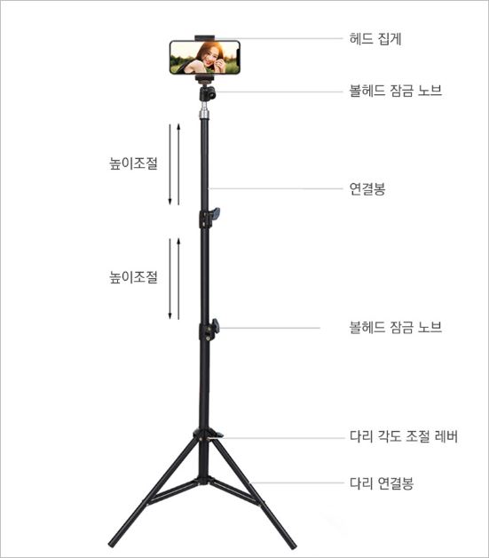 최대 121센치까지 늘어나며, 고압축 ABS 공법을 사용하여 안정감, 경량화, 디자인을 모두 최상으로 끌어올렸습니다. 자주 움직이는 부분은 5중 이탈 방지를 적용 더욱 견고히 카메라를 보호합니다. 가격은 17,000원 입니다. 삼각대 추천