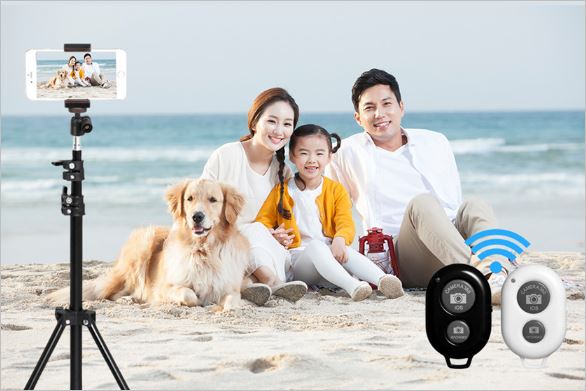 큐디스는 최대 5kg까지 하중을 견디는 탄탄한 삼각대로 110~170센치까지 높이가 자유로운 제품 입니다. 블루투스 리모콘을 활용하여 자동 촬영이 가능한 장점이 있습니다.