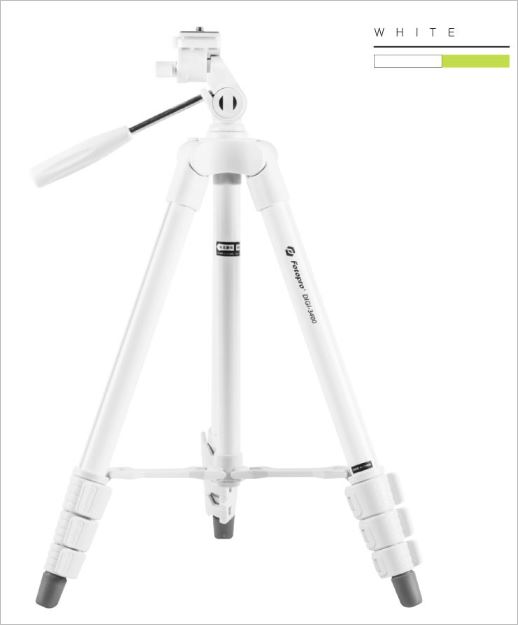 아즈나 DIGI-3400은 최대로 줄였을 때 38센치 밖에 안되는 컴팩트한 사이즈의 삼각대 입니다. 특히 520g 밖에 나가지 않는 작은 무게에 화이트로 시선을 사로잡아 여성분들에게 인기가 많은 제품입니다.