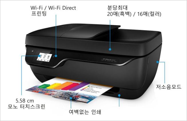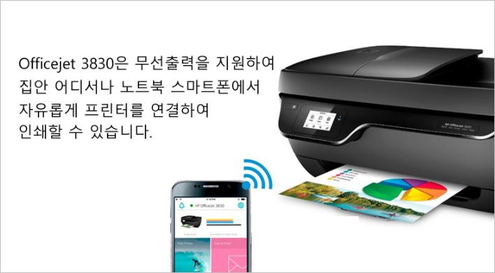 HP 3830은 고해상도 복합기로 팩스까지 지원되는 제품입니다. 무선 출력을 지원하기 때문에 스마트폰으로도 인쇄가 가능하며, 저소음모드로 소음 스트레스가 없습니다. 가격은 109,000원 입니다.