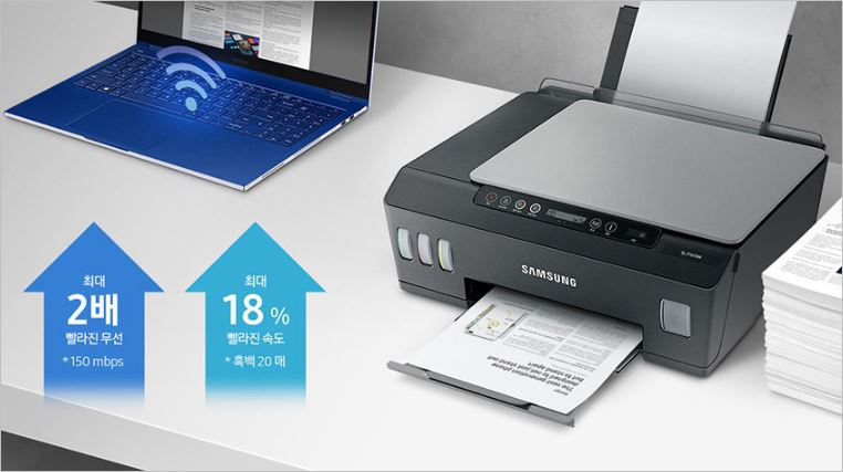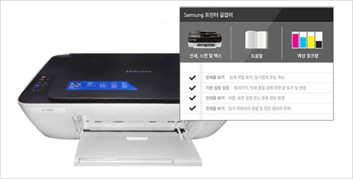 잉크 충전 불가 / 제품무게 5.61KG / 월 최대 1,000매 출력 / 흑백 20매 & 컬러 16매 인쇄